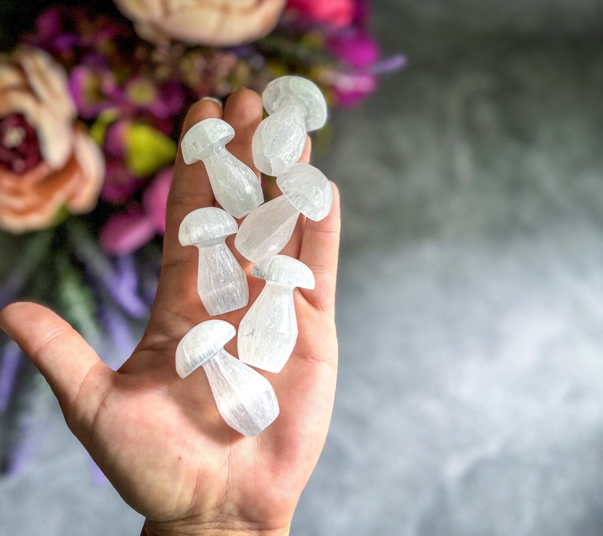 Our 1 3/4" Selenite Mushrooms are tiny treasures straight from a fairy tale! With their soft, glowing appearance, these delightful little mushrooms seem as though they've sprouted from a moonlit forest, where fairies dance and magic lingers in the air. Perfectly sized to sit in the palm of your hand, each selenite mushroom is not only irresistibly cute but also radiates the pure, cleansing energy that selenite is known for. Fairies are said to adore these luminous mushrooms, making them the perfect addition to your mystical collection or as a whimsical gift for someone who believes in a bit of magic.*