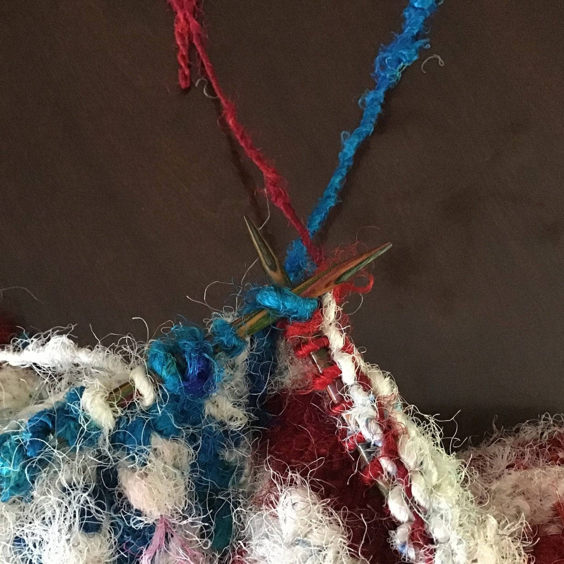 Craft: Knit Category:Home Decor Difficulty Level:Easy Yarn Required:4 Skeins of DGY Recycled Silk Yarn Lux Adventure (1 Cherry Red, 2 Cream, and 1 Caribbean Ocean) Yarn Weight: 4- Medium, 5- Bulky Needle Size: (not included) US 8 (5.00 mm) knitting needle Materials: (not included) Scissors and a tapestry needle Finished Dimensions: Approx. 13" x 25" Designed By: Janica Carter | @janicancarter