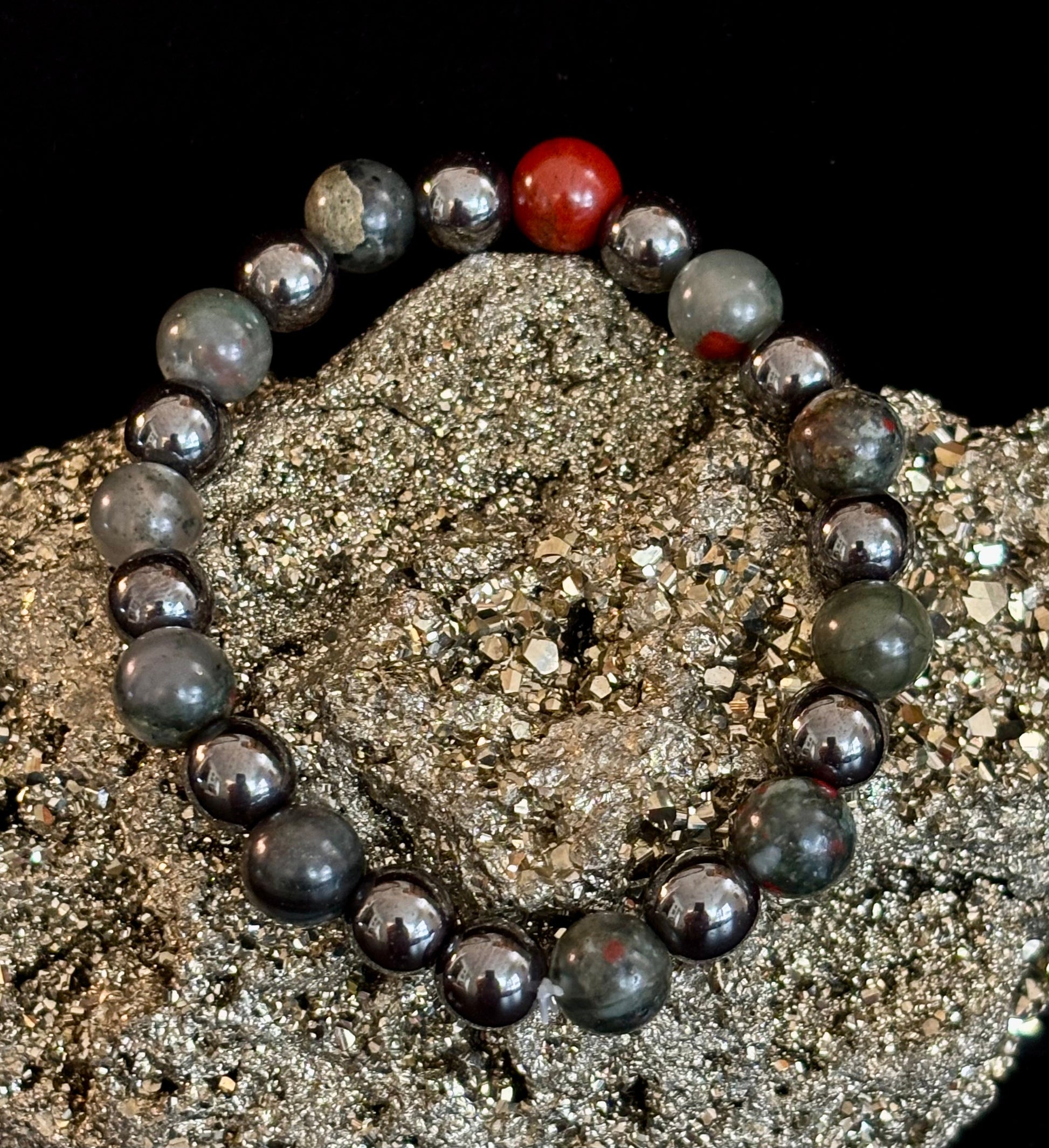 Enhance your well-being with the Bloodstone & Hematite Crystal Healing Power Bracelet, a powerful combination of two highly regarded stones in the world of metaphysical healing.