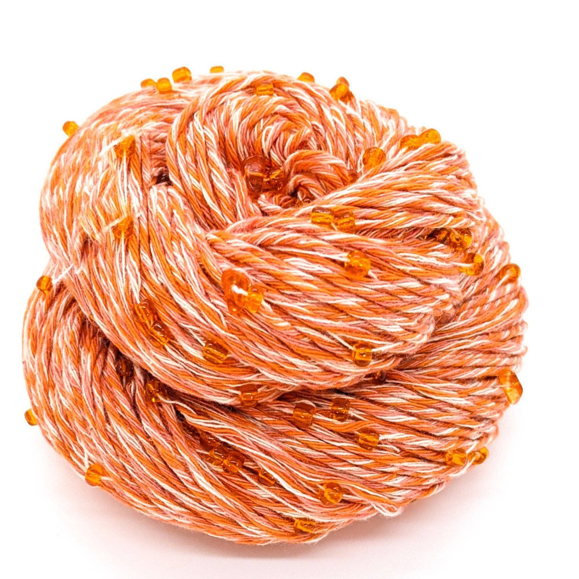 Length/Weight: 180 yds each Yarn Weight: 3 - DK Yarn Material: Cotton, Beads Needle Size: US 5-7 (3.75 - 4.5mm) Hook Size: US G-7 / I-9 (4.5 - 5.5mm) Gauge: K 21-24 /4", C 12-17 /4" Physical Quality: Soft, loosely plied. How to clean: Hand wash, lay flat to dry.