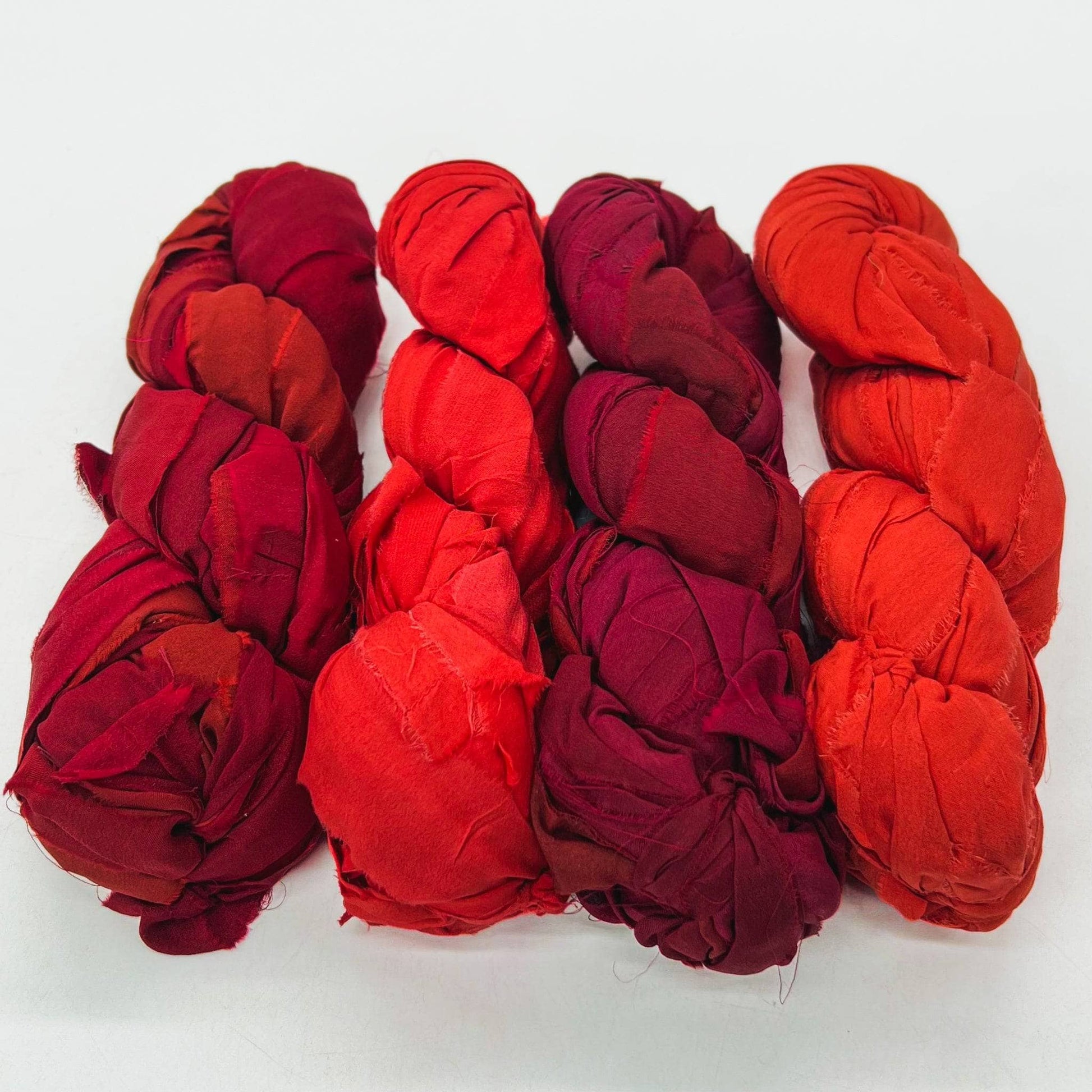 Chiffon is an exquisite light and airy fabric, perfect for adding elegance and charm to any project. At Darn Good Yarn, we partner with skilled artisans in India to create one-of-a-kind yarn from reclaimed chiffon. Each piece is expertly dyed in a stunning array of ombre colors, offering both bright and cheerful or subdued and elegant options to elevate your crafting.