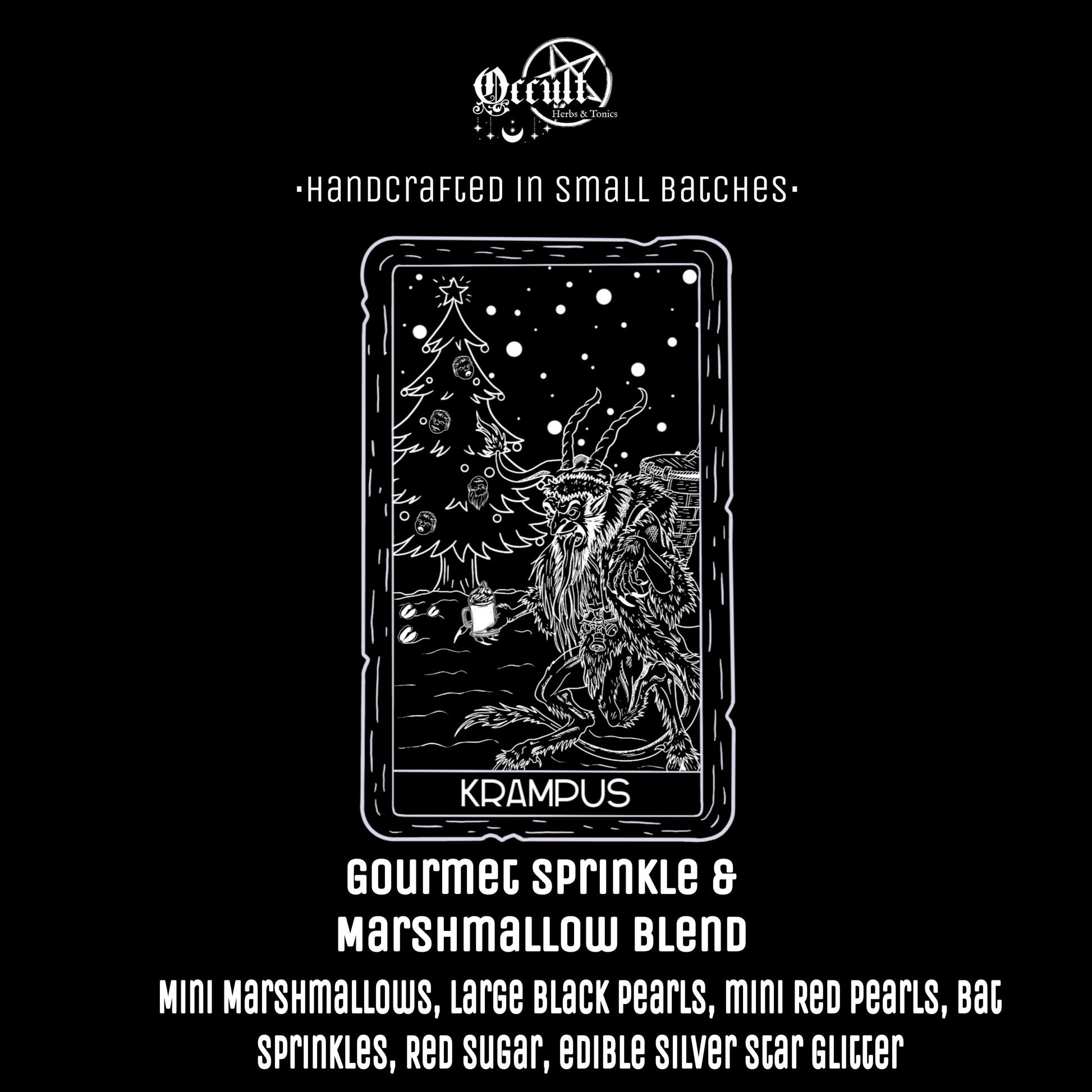 Krampus Cocoa is a gourmet dark cocoa blend, handcrafted in small batches. This is our DAIRY FREE, SUGAR FREE version. Purchasing options are available with or without the sprinkles/marshmallow mix since that is NOT SUGAR FREE.