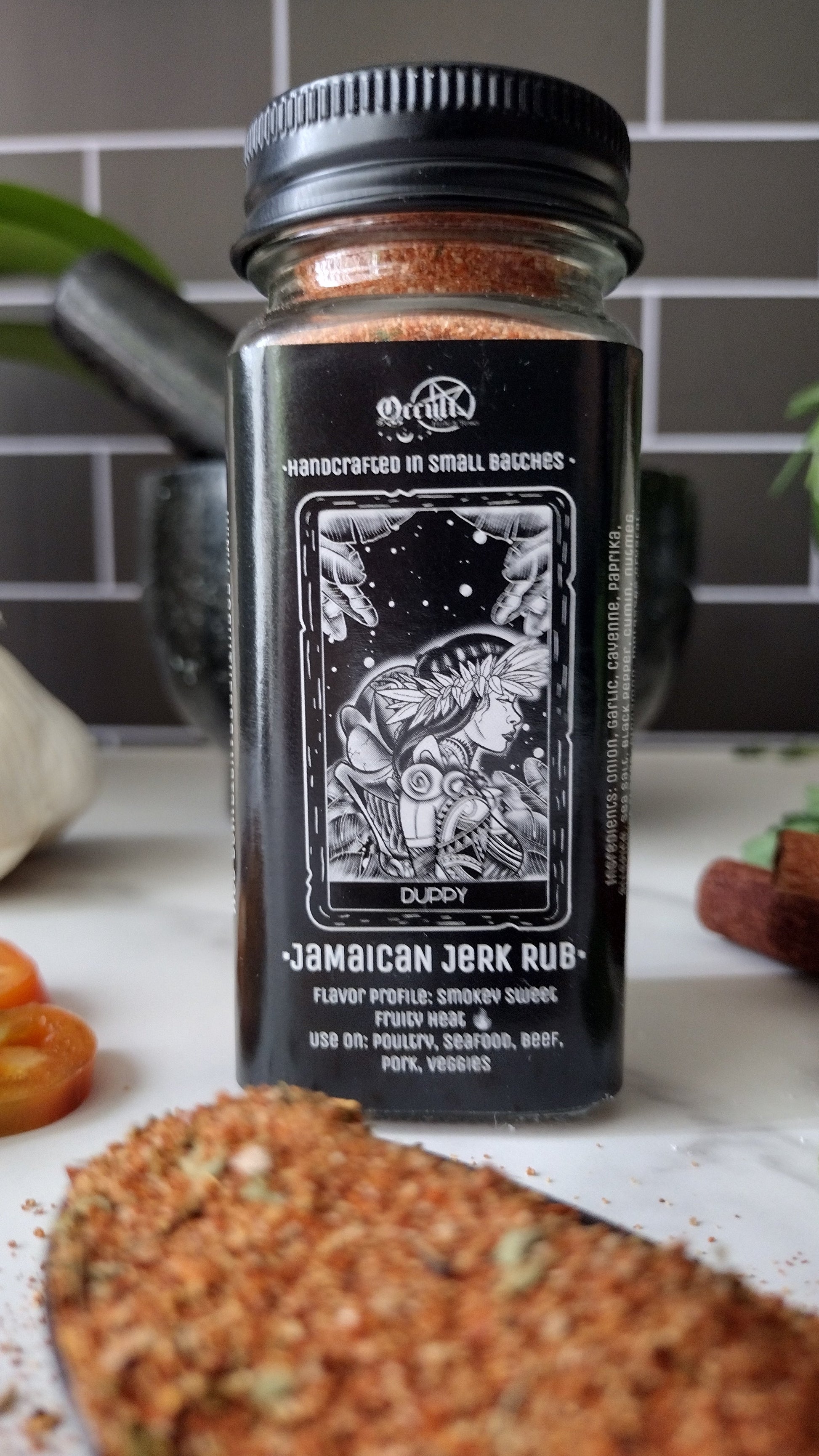 Experience the authentic taste of Jamaica with Duppy Jamaican Jerk blend. Inspired by Caribbean folklore, our blend uses whole allspice berries and a complex mix of spices for a true island flavor. Bring some spice into your life with Duppy.