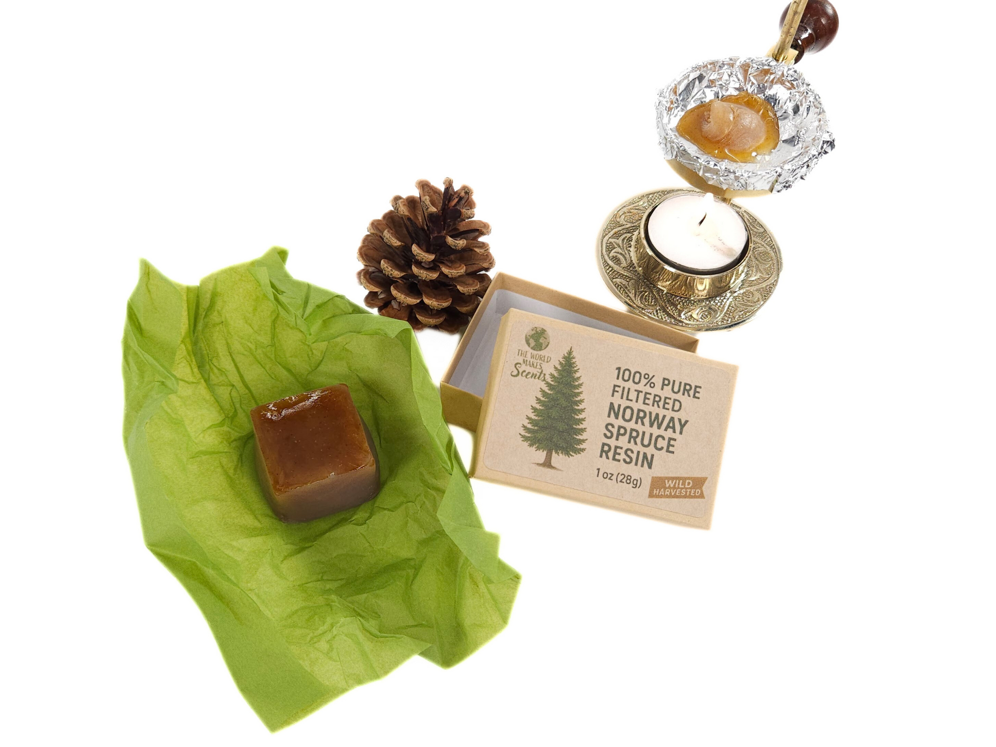 1. Pull or cut a piece of the resin and place on an incense warmer. Electric or tealight both work. 2. Take a small sliver and place on a charcoal disk. 3. Carefully warm the resin and add to your incense dough. Knead the dough to distribute the resin.