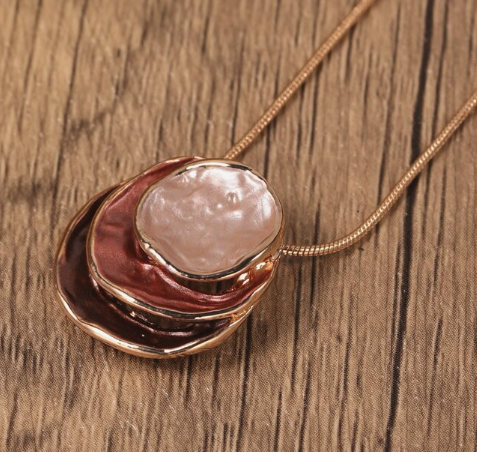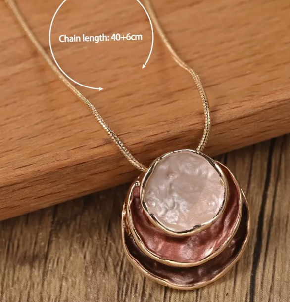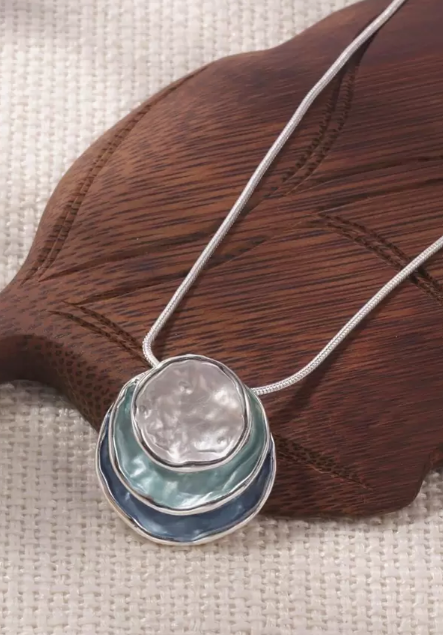 Channel the calming beauty of the sea with our Geometric Charm Necklace, a statement piece that radiates boho-coastal energy. Featuring layered, ripple-inspired discs topped with a lustrous faux pearl center, this pendant is the perfect accessory for dreamers, wanderers, and beach lovers alike.