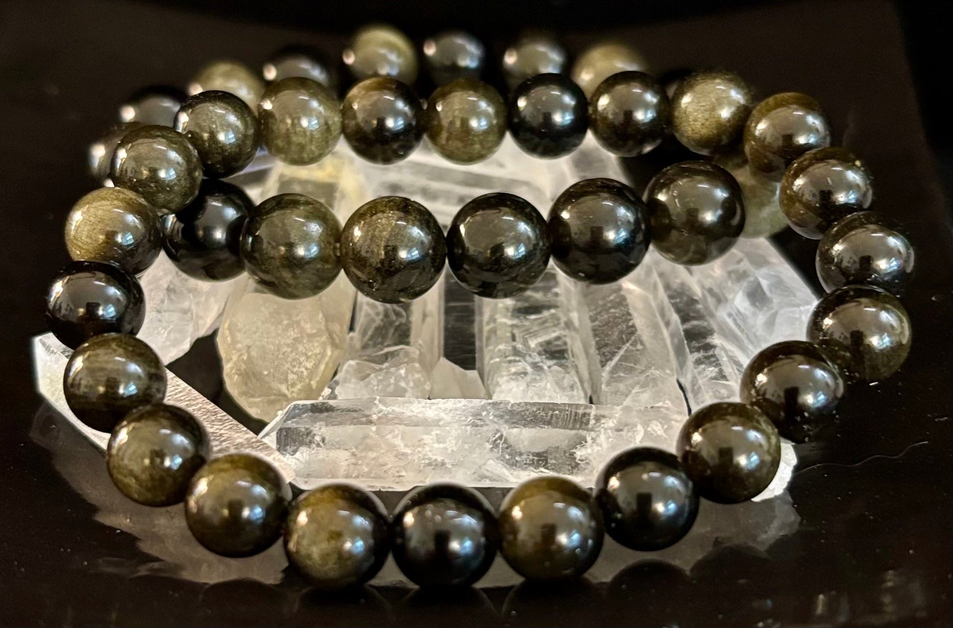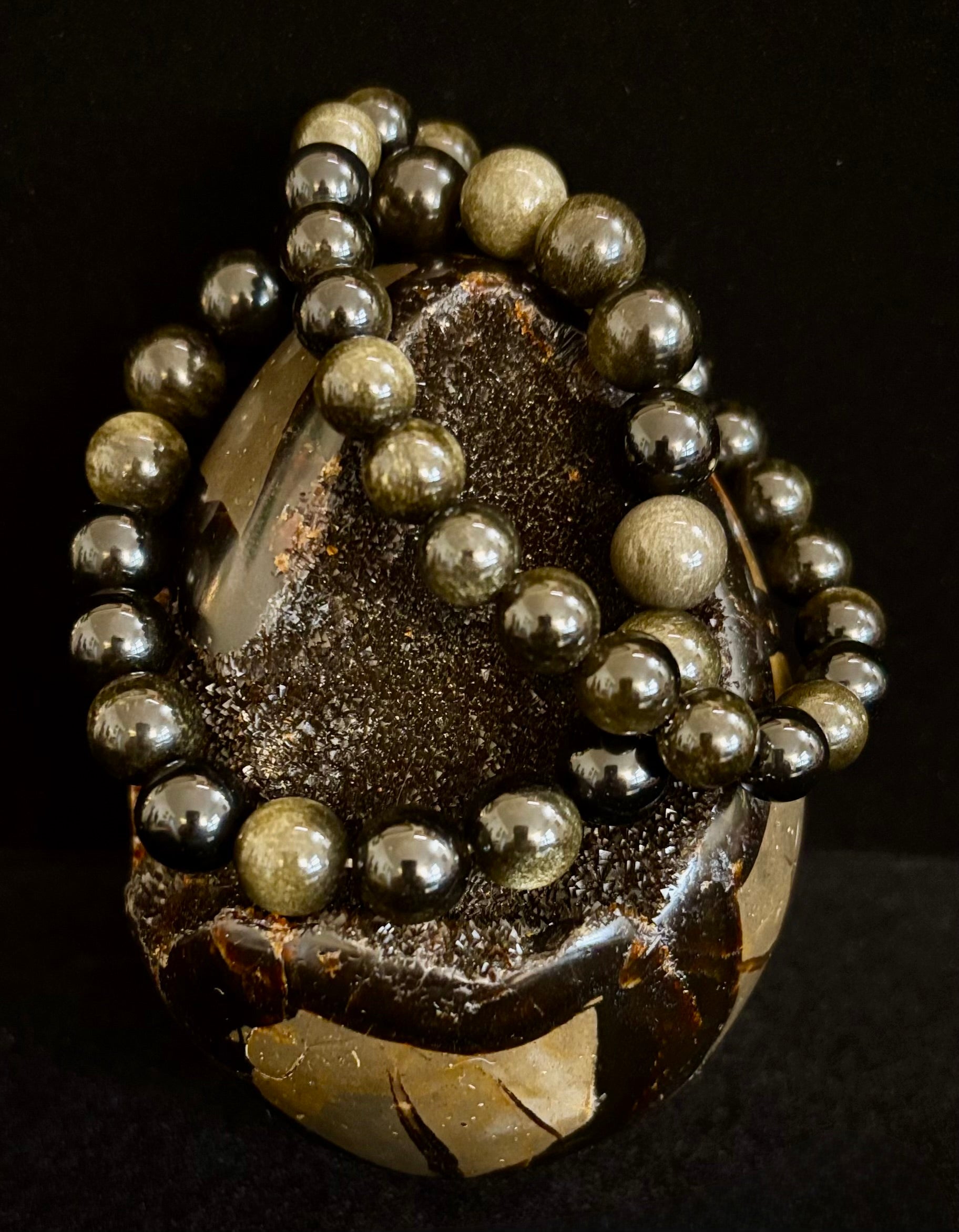 Gold Obsidian Protection Bracelet – 8mm & 10mm Beads for Small to Medium Wrists 🖤✨