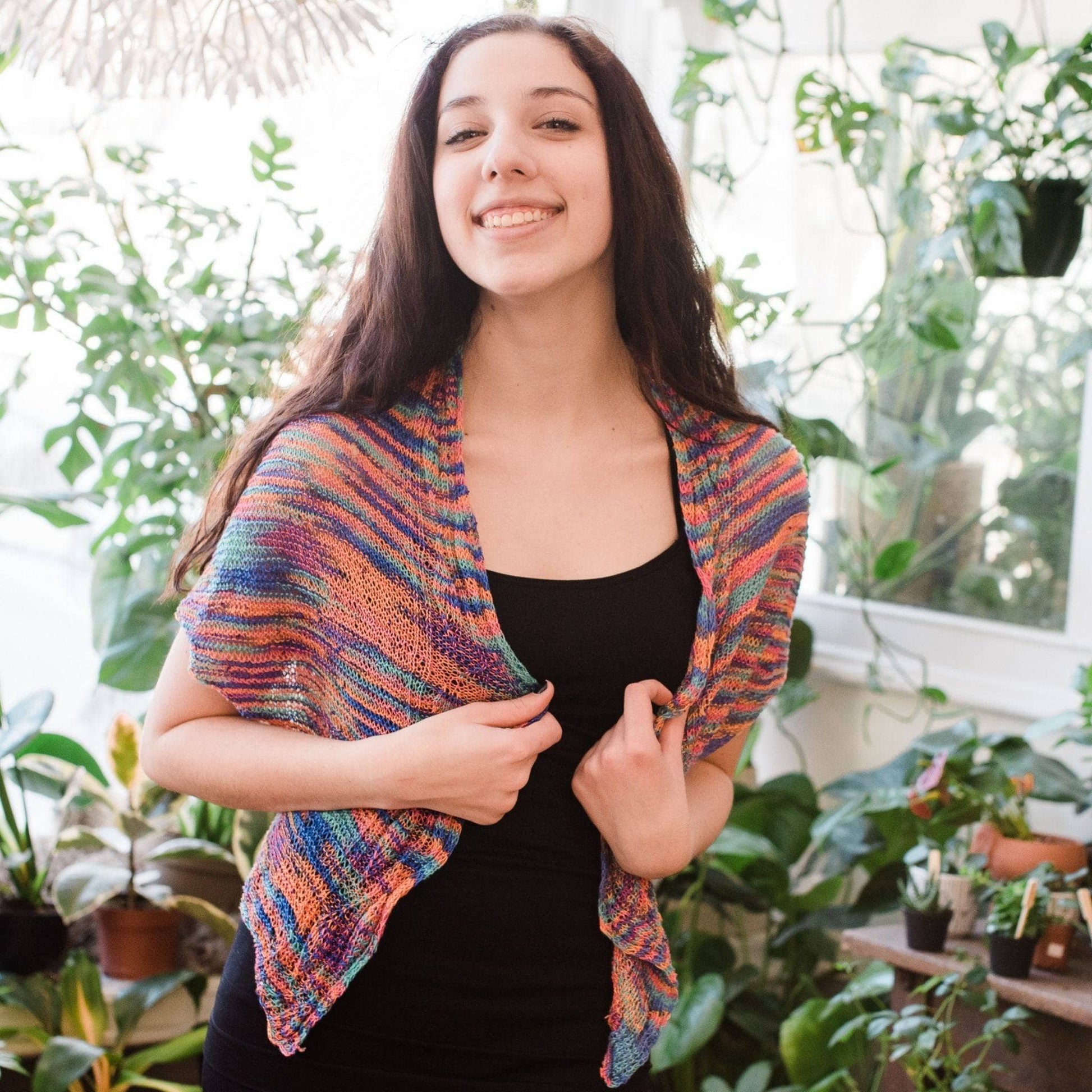 Ultra soft plied silk yarn with beautiful seed beads already strung on help give this shawl a pop of sparkle.