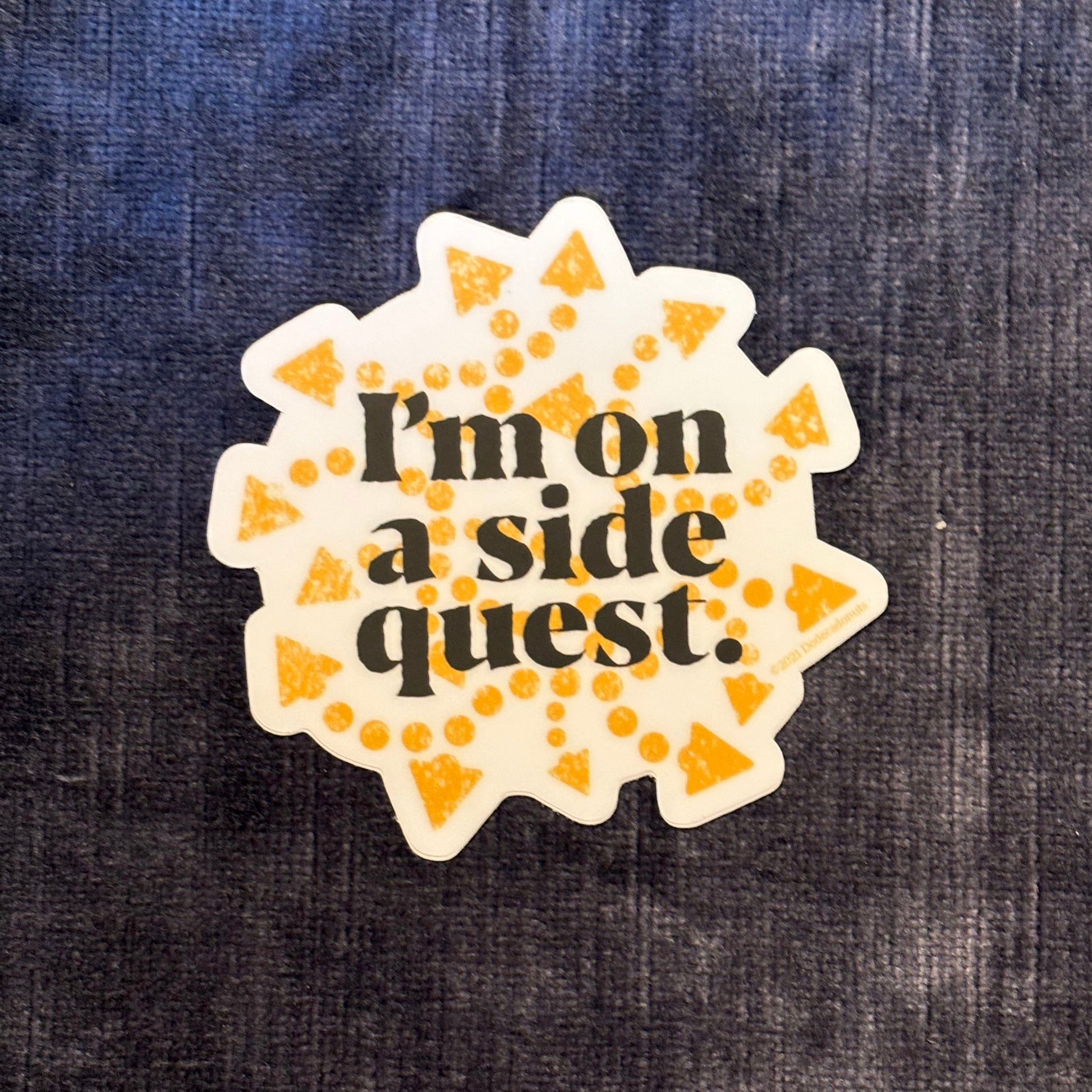Embrace your wanderlust and gaming spirit with the “I’m on a Side Quest” Vinyl Sticker—a charming emblem for anyone who knows the side quests are where the real fun happens. Perfect for RPG players, gamers, and fans of playful procrastination, this sticker makes a lighthearted declaration that you’re not lost... you’re adventuring.