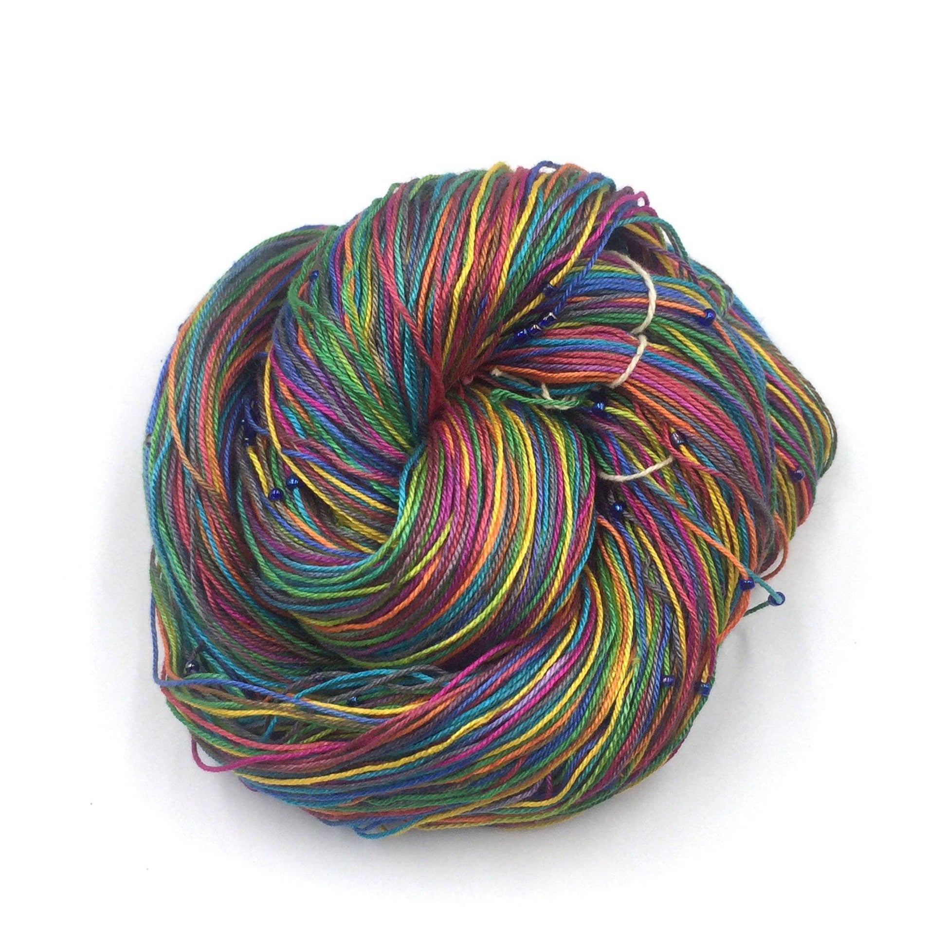 Each kit comes with 2 skeins of hand beaded silk yarn and a digital pattern download.