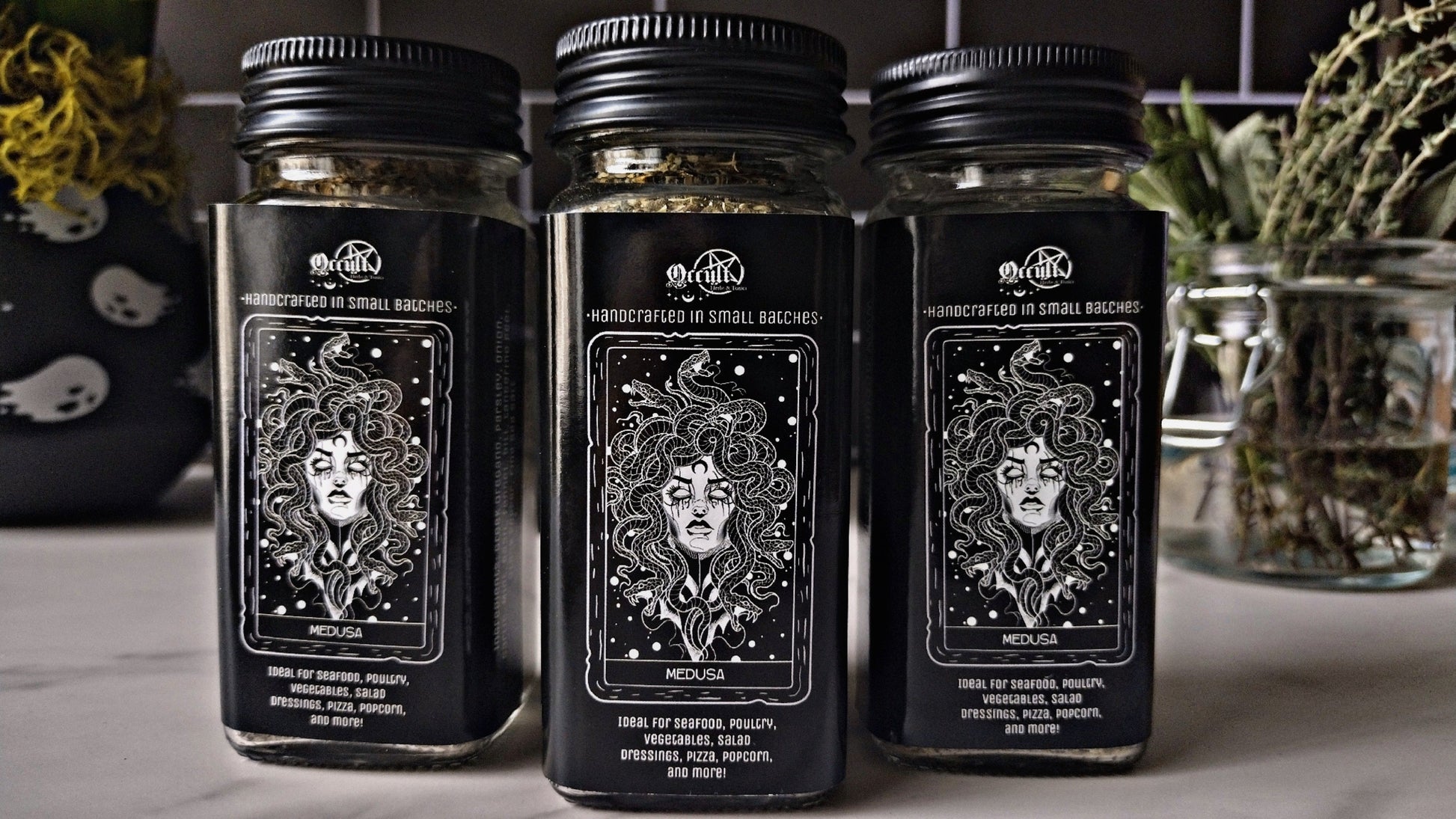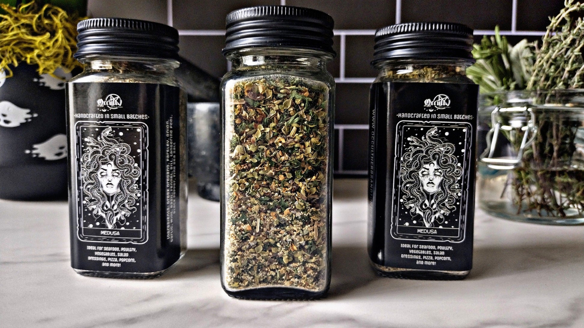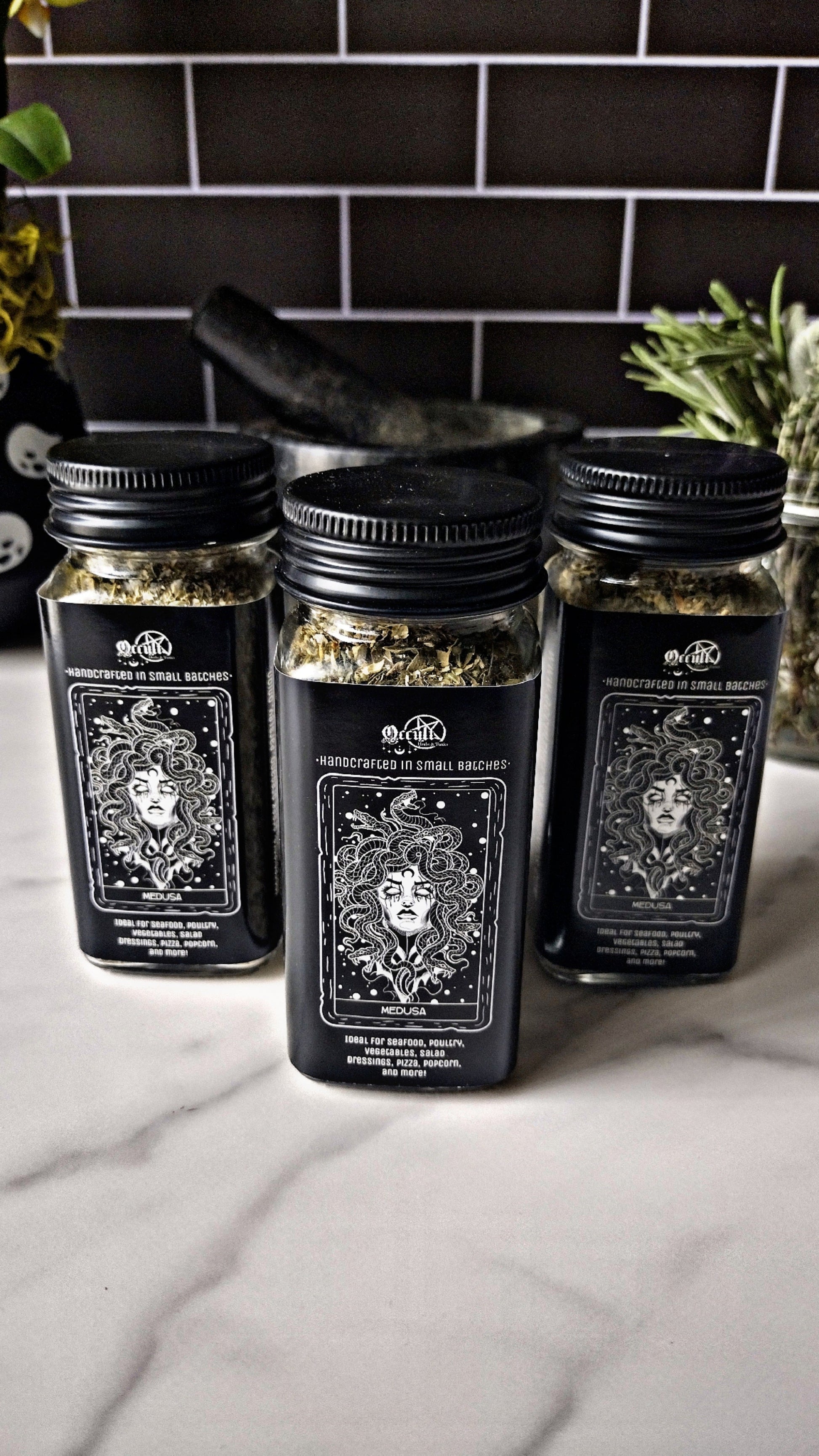 Experience Medusa, our Mediterranean/Greek-inspired blend. Perfect for bringing a unique flavor to seafood, salad dressings, pizza, poultry, roasted vegetables, and more. Our blend of herbs and spices bring bright, bold flavors to your dish.