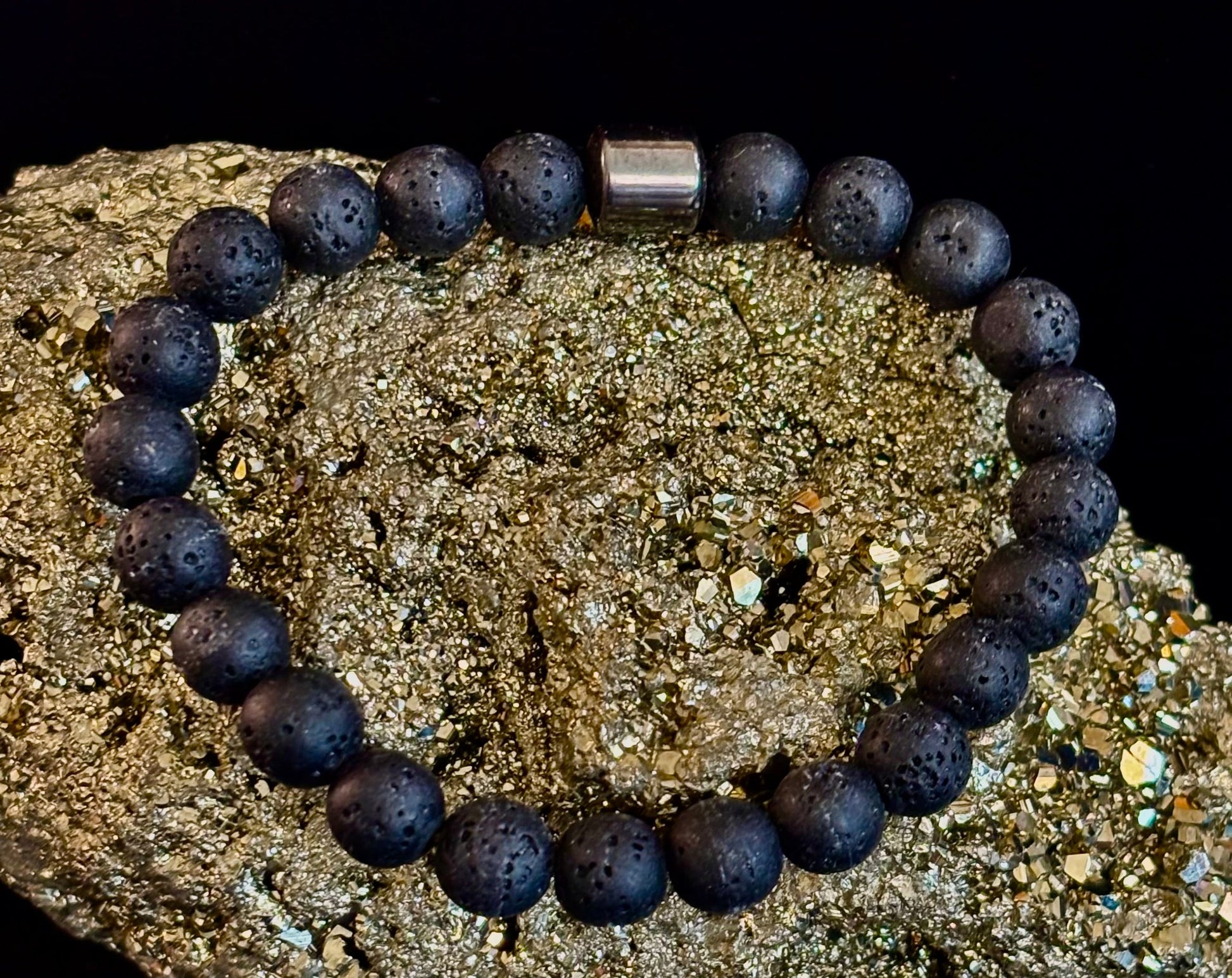 Harness raw elemental energy with porous lava rock, protective black jasper, and a magnetic boost for daily strength.