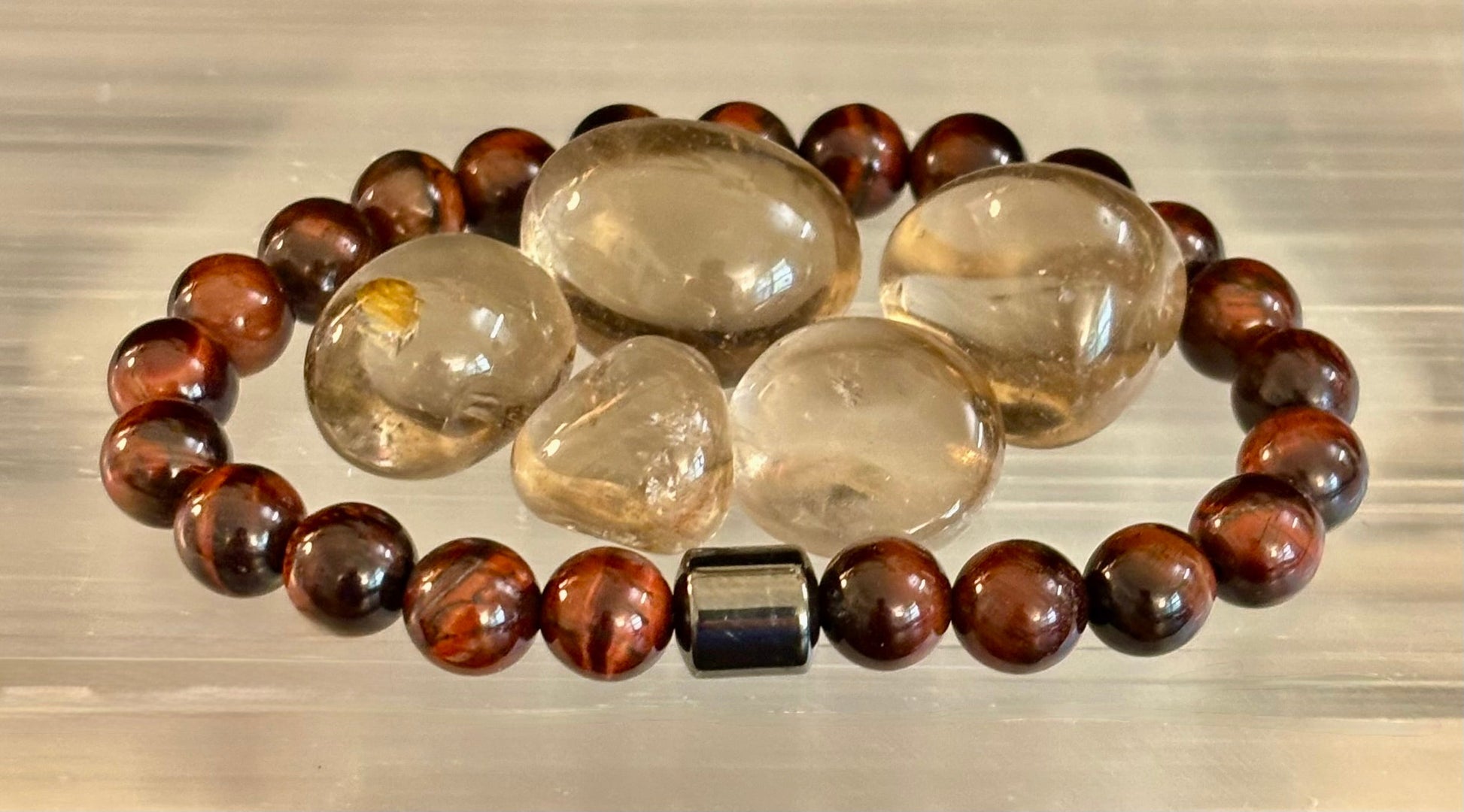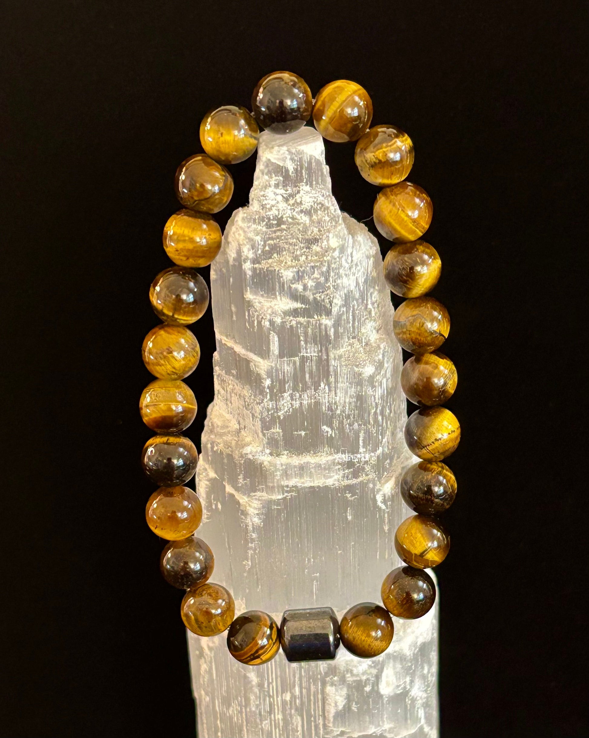 Tiger’s Eye energizes confidence and courage while the magnetic center enhances your natural drive and focus.