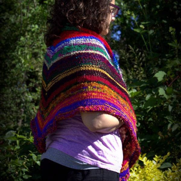 Made with five skeins of Spice Market, this is a shawl is the perfect way to add some color and spice to your wardrobe. This type of project is often referred to as a mindless knit — something simple enough that you don’t need to keep checking your place in the pattern. I like to think of these projects more as a moment of zen. You can just let the needles go to work as you relax and let the yarn speak for itself. Take a moment for yourself and knit this shawl from the top edge down to the point.