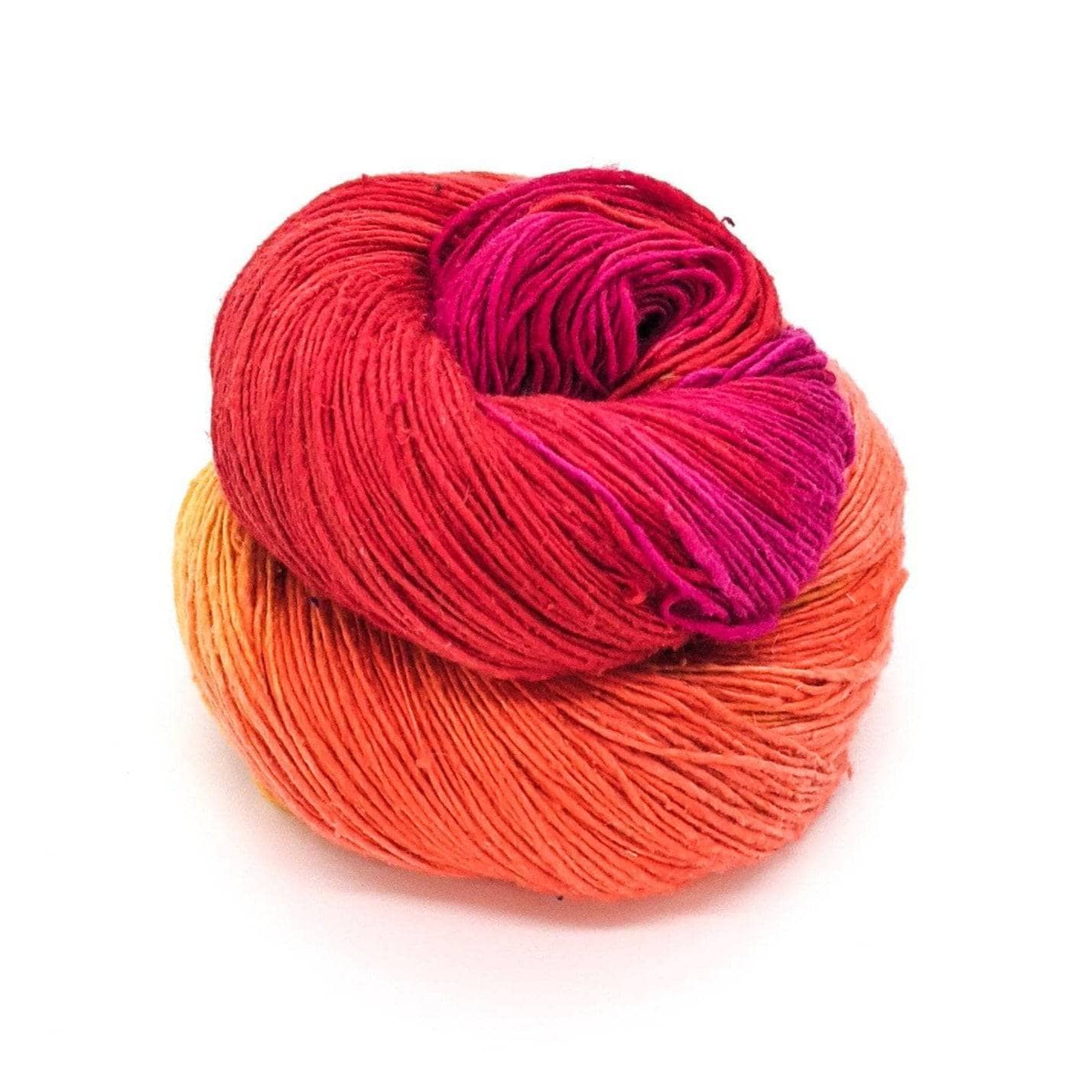 This shawl is made in our soft lace weight silk yarn which comes in a variety of colors. This kit features 3 skeins of lace weight silk yarn and a pattern.