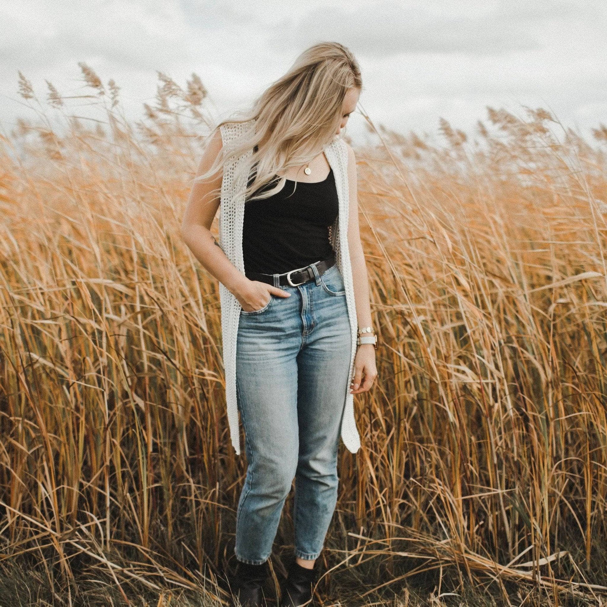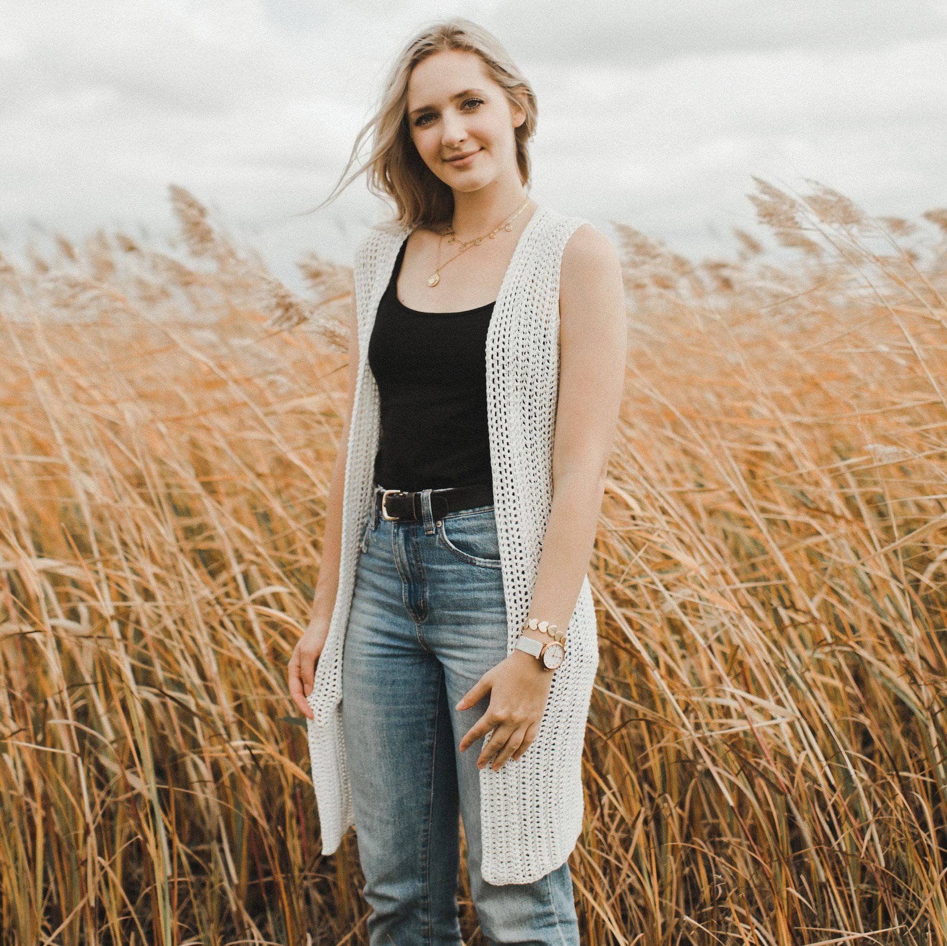 The Sunbeam Vest Crochet Pattern is an easy pattern suitable for crocheters of any skill level. This long vest is lightweight and perfect for traveling or adding to everyday outfits.