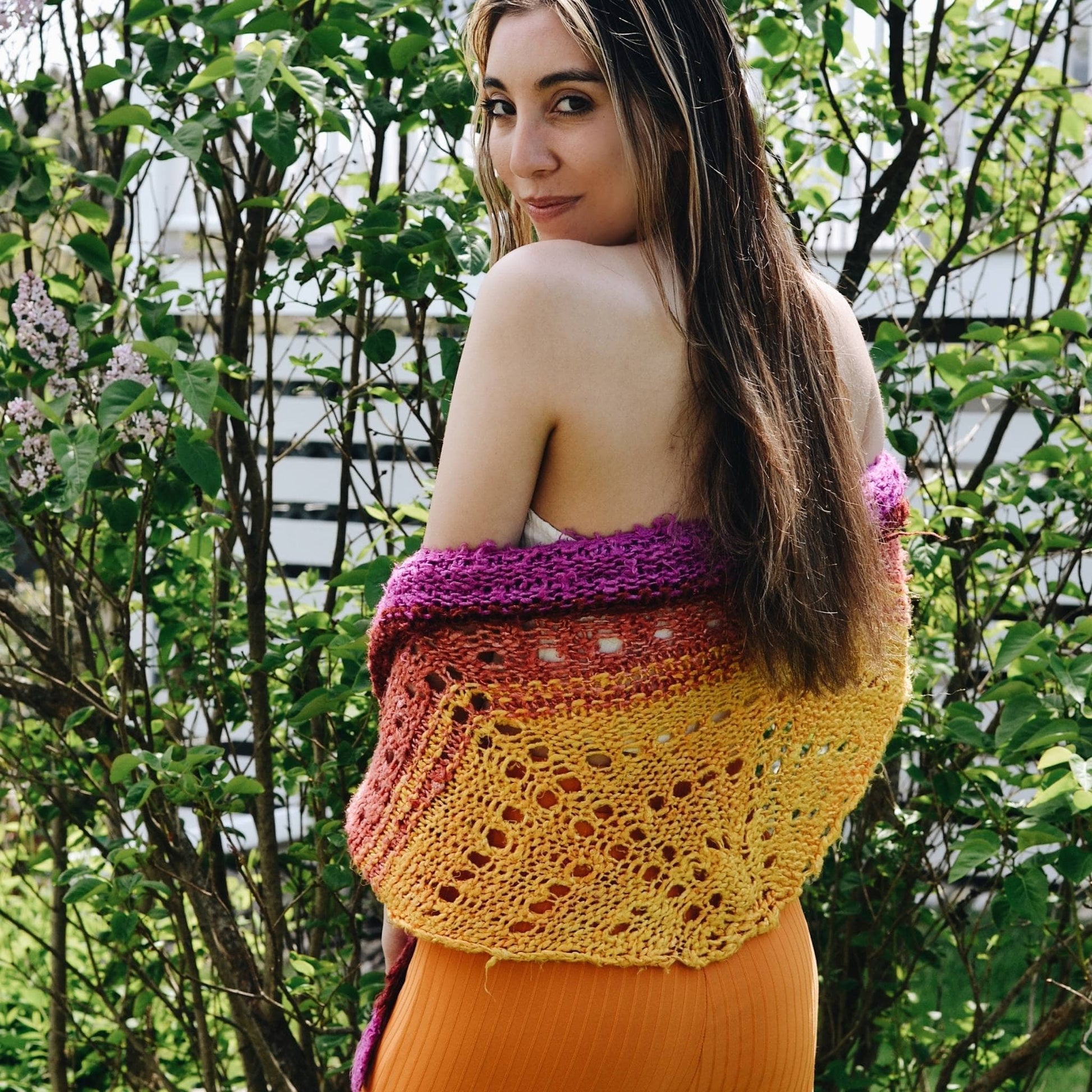 Create a stunning ombre shawl that embodies the sunset or sunrise with this knit kit! Made with our soft, plant based Banana Fiber Yarn, this shawl is an embodiment of nature. Each kit comes with 5 skeins of yarn and a pattern.