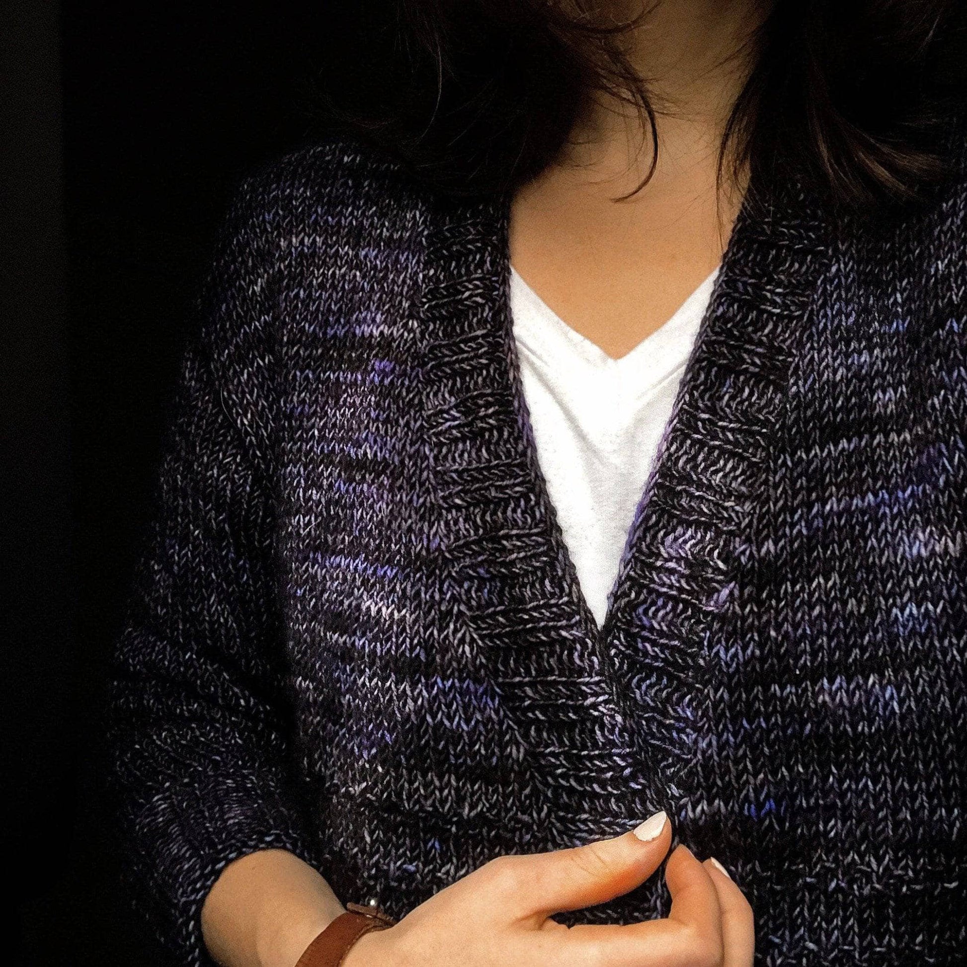 As a project and as a finished piece, this cozy cardigan will be your best friend this winter. This quick knit pattern and project is worked from the bottom up and requires only minimal seaming. The end result is a perfectly cozy cardigan with a loose gauge that is perfect for layering. The Roman Stitch adds detail while keeping things simple and stress-free. The designer featured the unbelievably soft Malabrigo Worsted 100% merino wool yarn in the Purple Mystery variant.