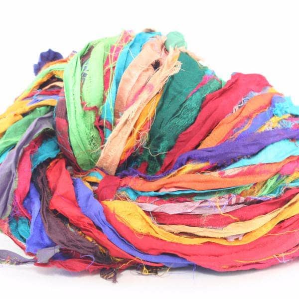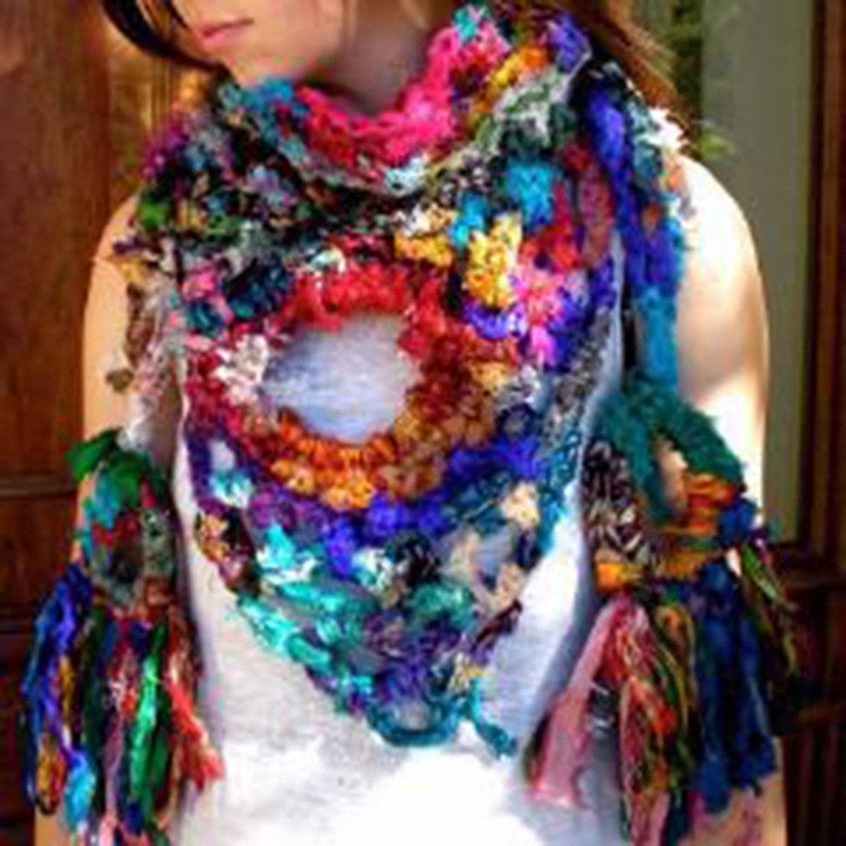 Yarn: 3 100g skeins of Darn Good Yarn Sari Silk Ribbon - Tibet Jewels or At the Bahamas