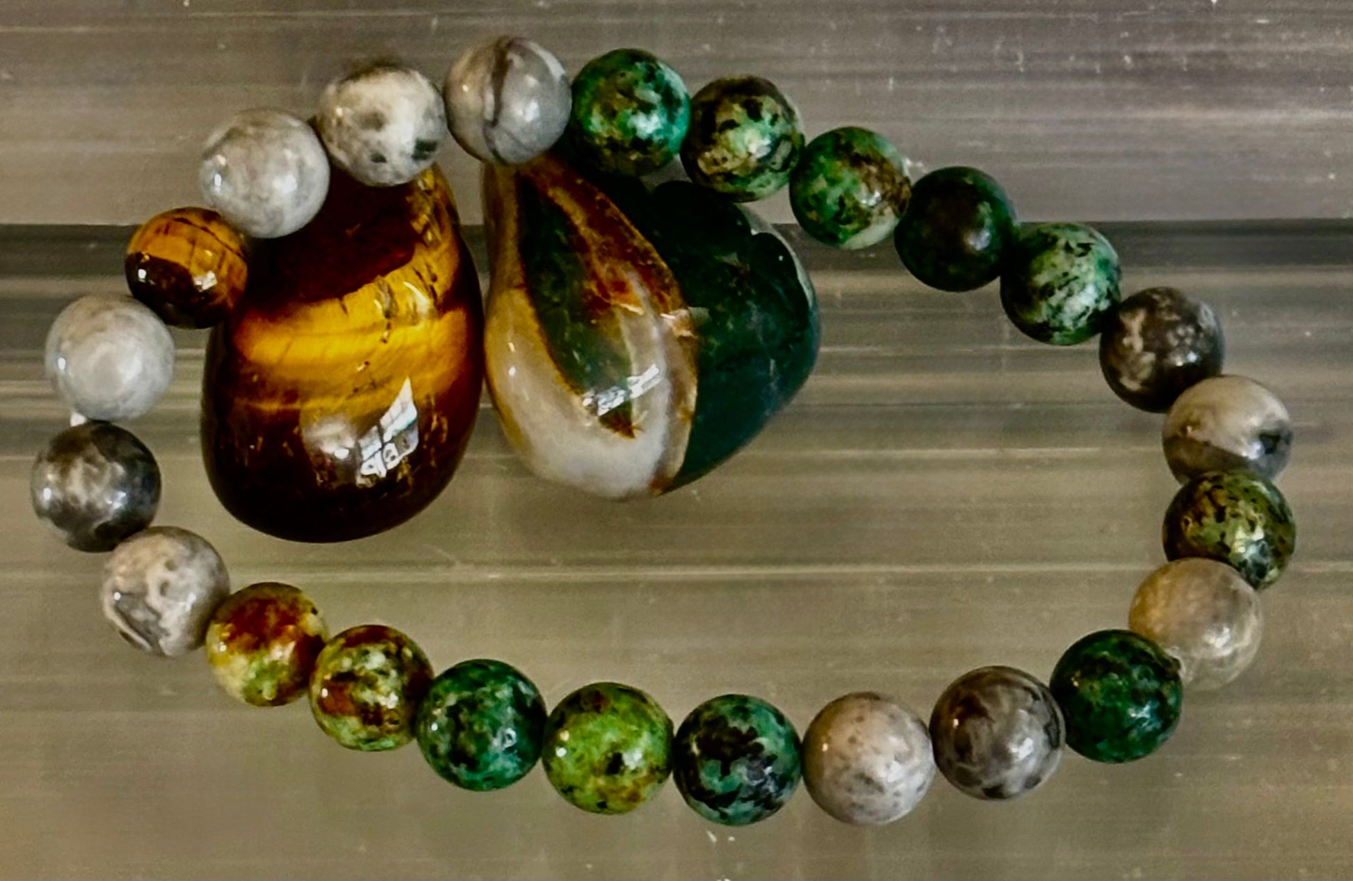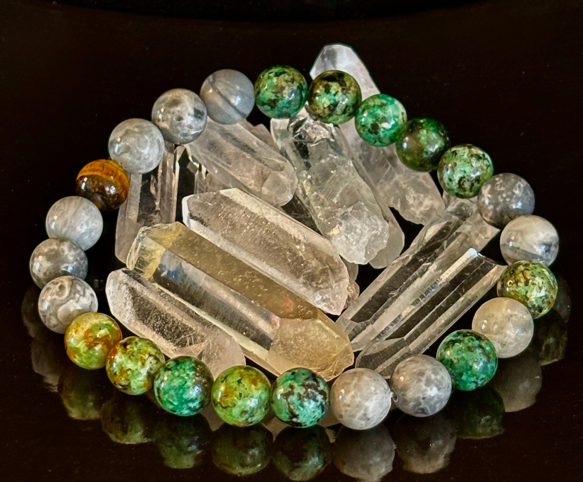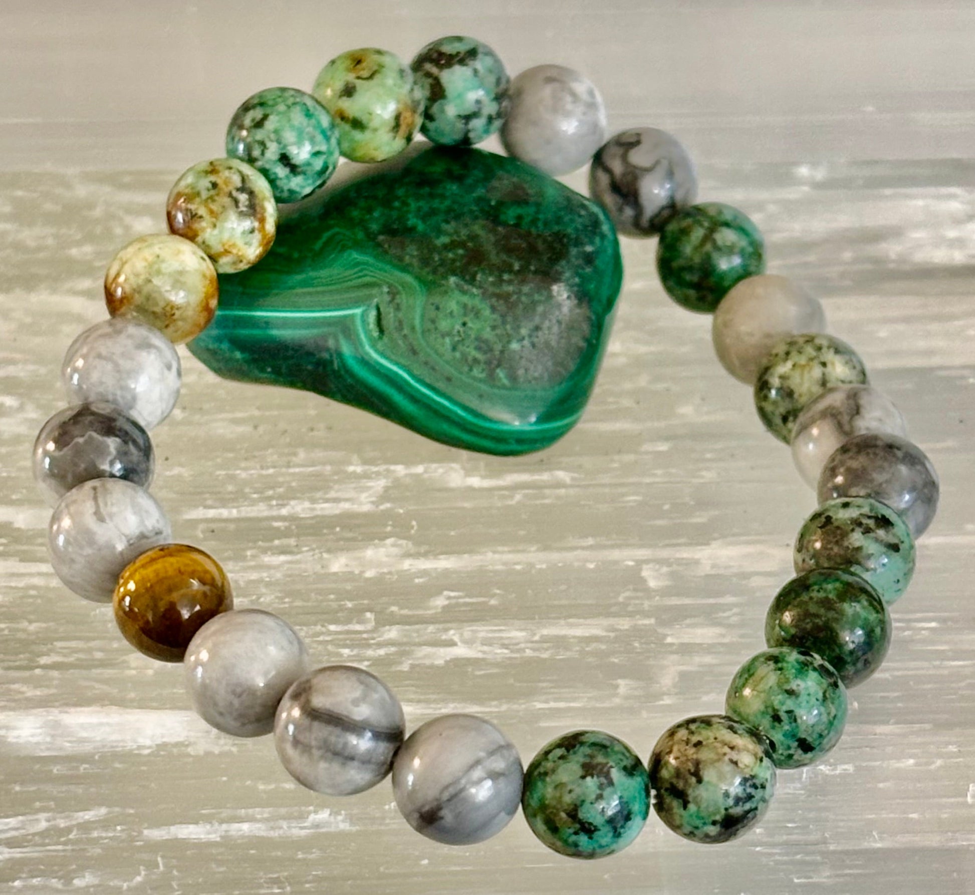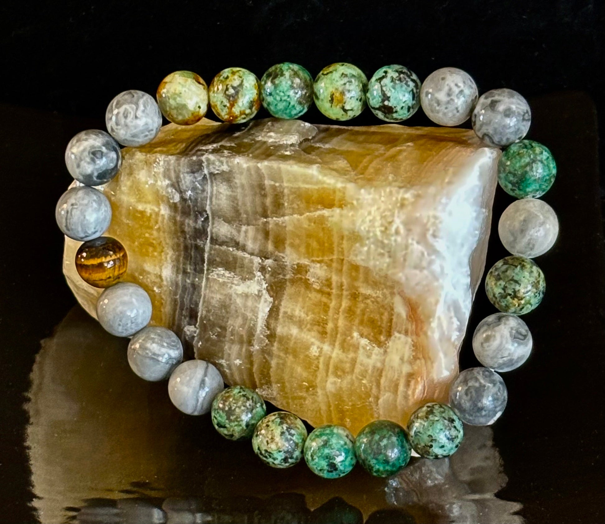 Tranquil Power Bracelet – African Turquoise, Tiger Eye & Map Stone