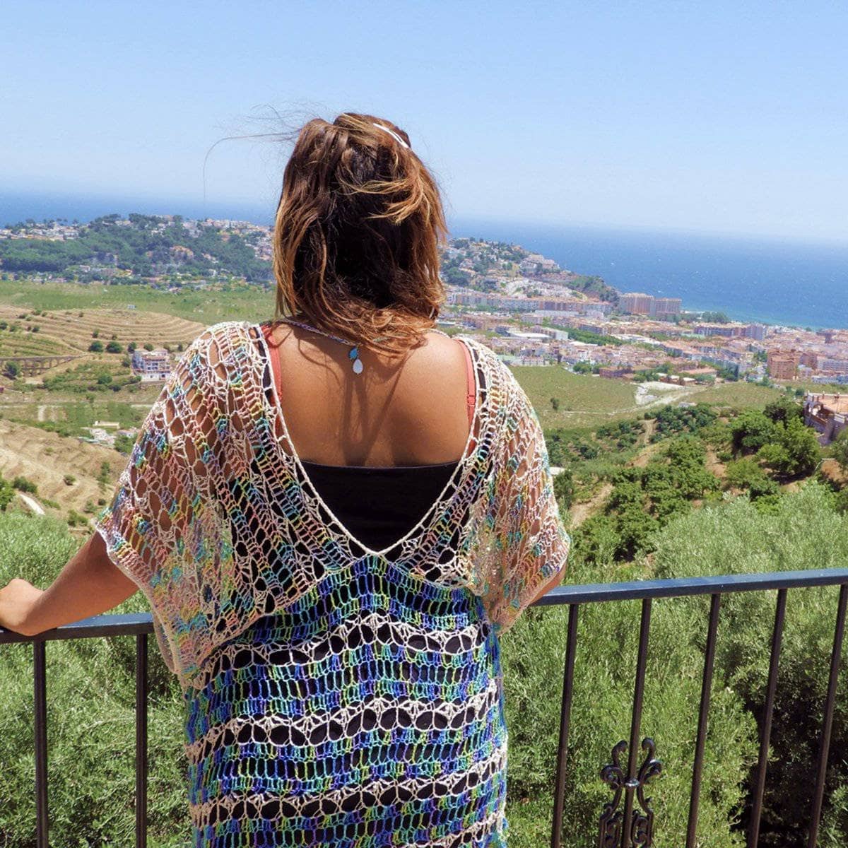 Under the Sea is an oversized duster that can be worn over anything, from a bathing suit cover-up to a luxurious accessory to a formal dress. The colors and stitches channel the energy of the ocean, life, and beauty.